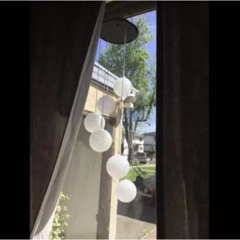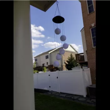Love this crystal ball outdoor decoration, though they are not chimes. Much smaller than they appear in photos; we like the actual size better.